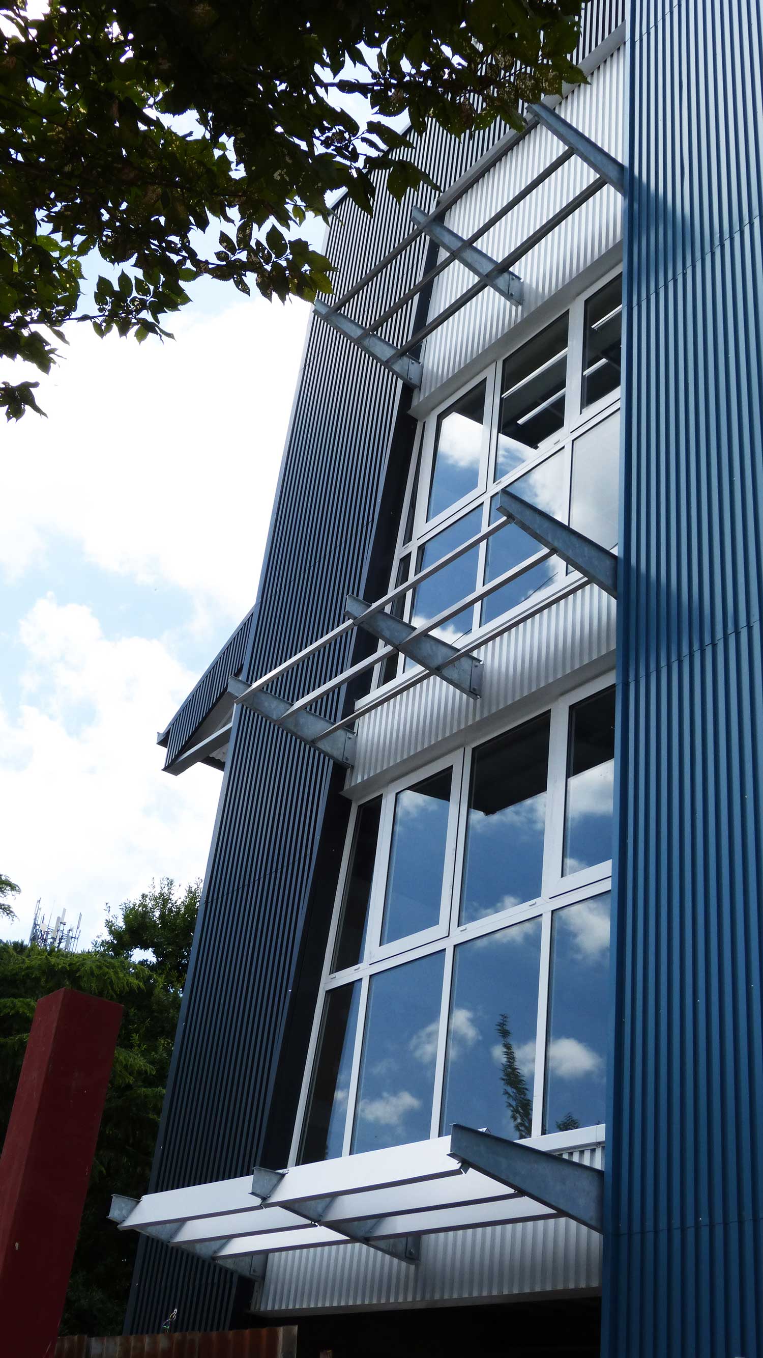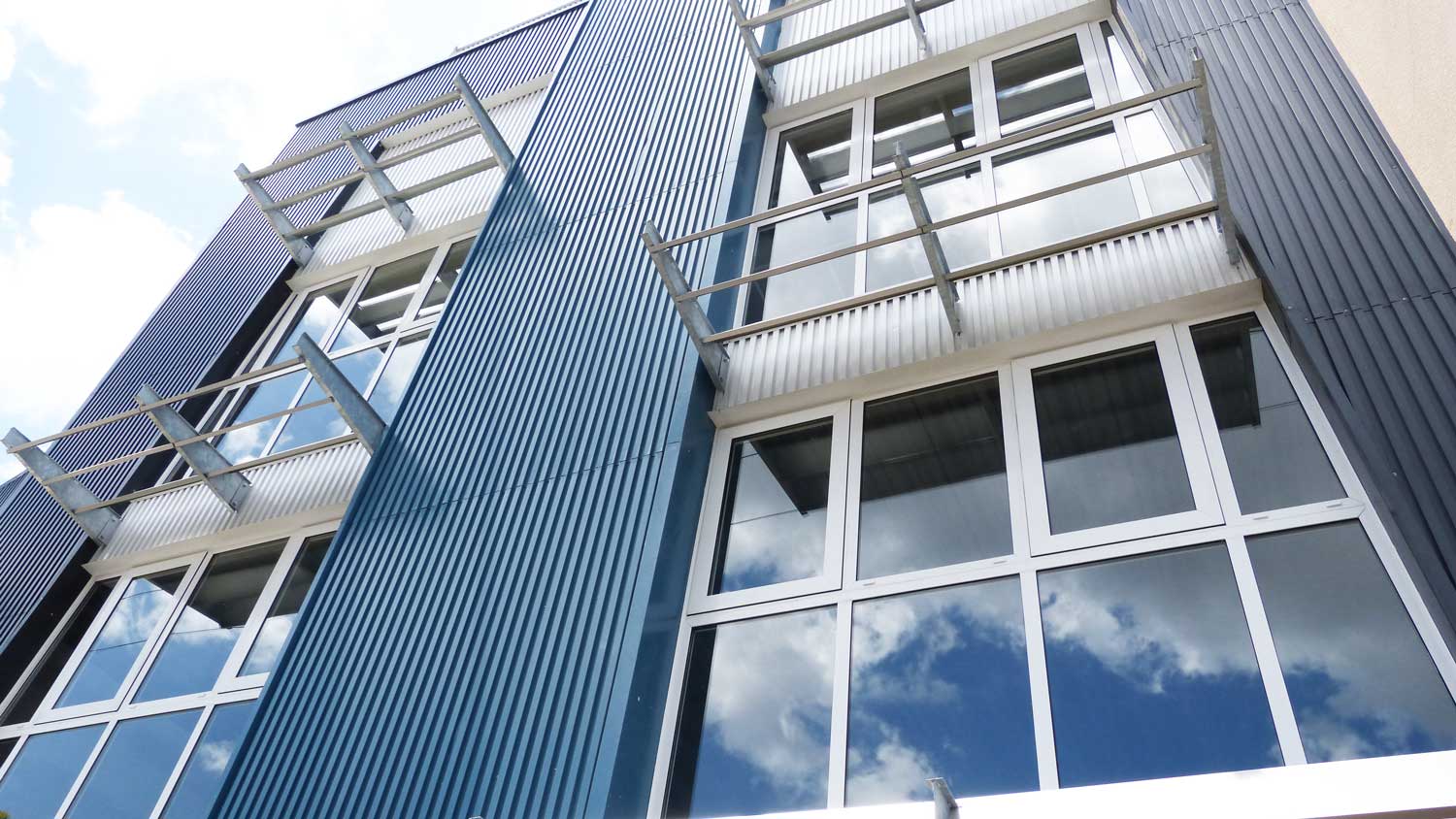 Fabricación y montaje de nave para depósito con unidad de oficinas al frente. Colocación de steeldeck para entrepisos de oficina y posterior cerramiento en fachada principal con chapa quadroline.
